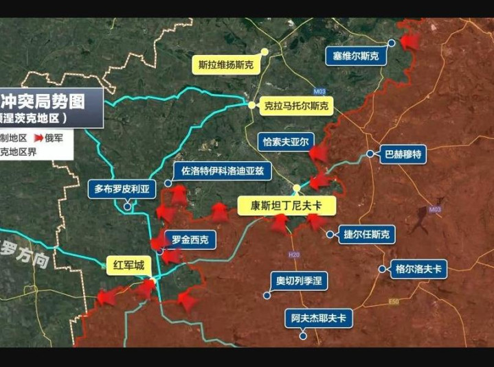 比如红军城这个战略要地周边的3个村镇,被俄军掌控。接下来俄军就可以轻松地进攻这个战略要地,城里的乌军势必会更加危险。